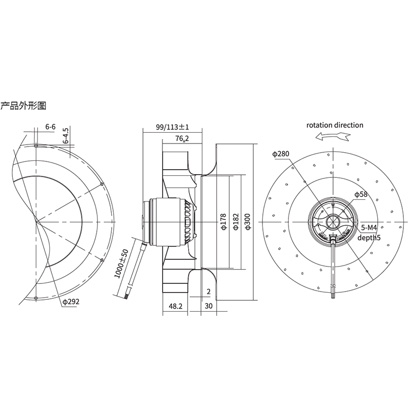• YWF.B4S-315-136AB1A全新原裝315系列后傾離心風機圓形