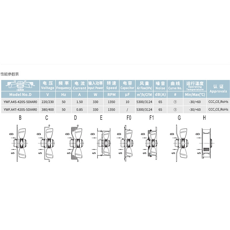 • YWF.A4S-420S-5DIA00全新原裝三木馬爾微光外轉子風機