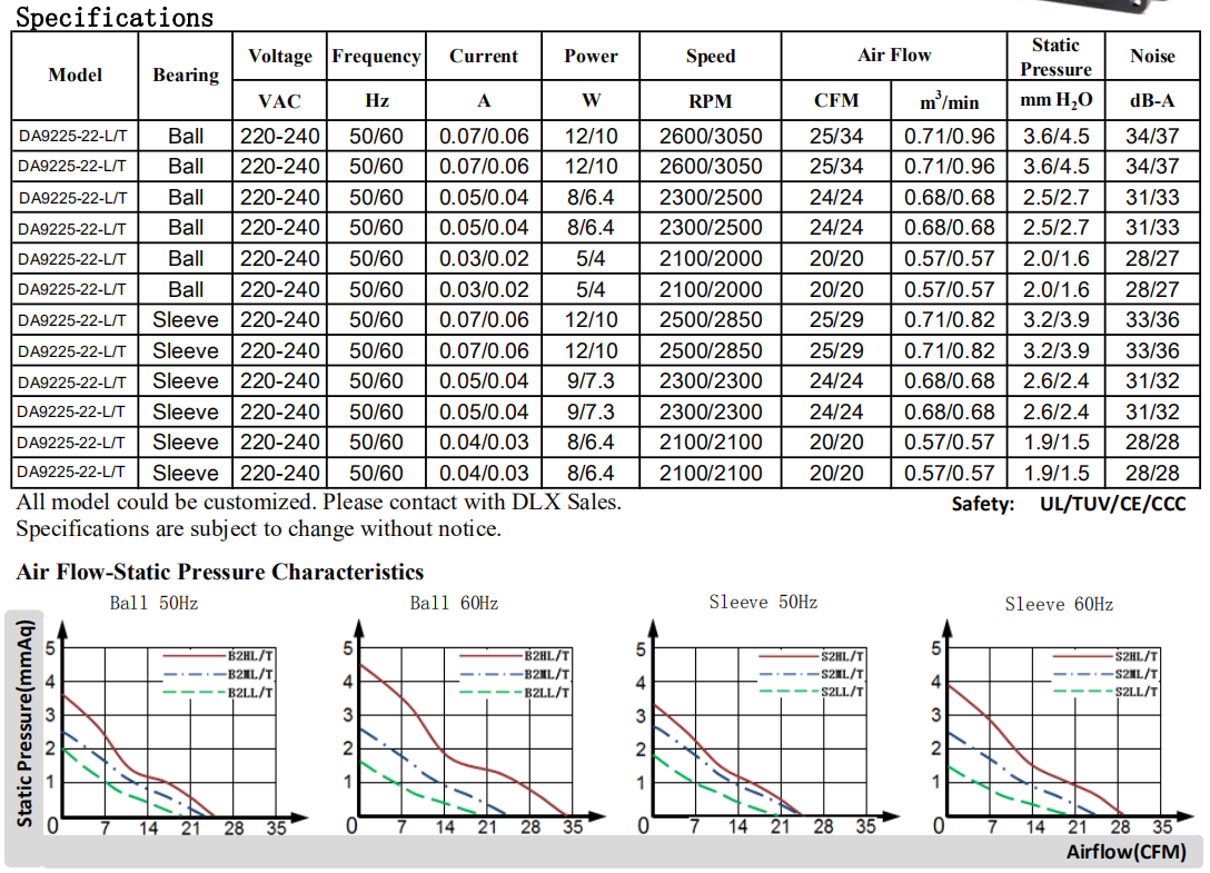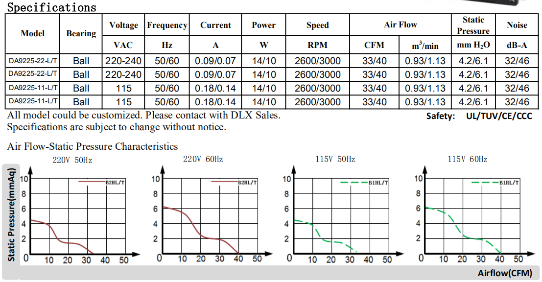 92 x 92 x 25mm DA9225 115/220V軸流風機,9厘米散熱風扇可定制OEM
