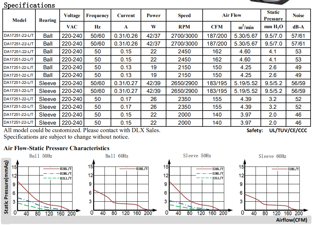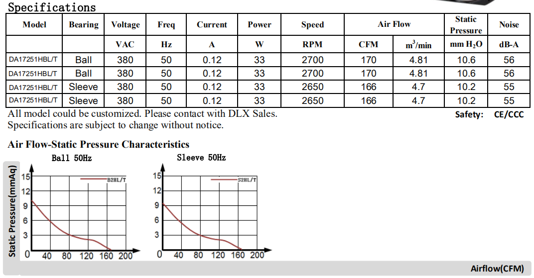 Φ172 x 150 x 51mm DA15050 115/220V七葉高風壓版,廠家直銷可OEM